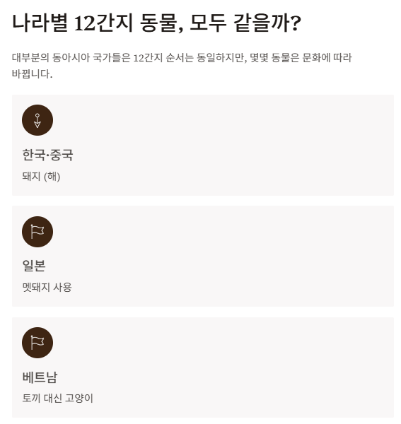 나라별 12간지 동물, 모두 같을까?