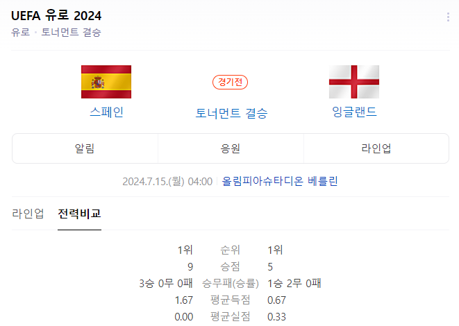 결승전은 한국시간 2024년 7월 15일(월요일) 04시 역사적인 올림피아슈타디온에서 열립니다. 이 상징적인 장소가 유로 결승전을 개최하는 것은 이번이 처음으로 더욱 특별한 의미를 더합니다.