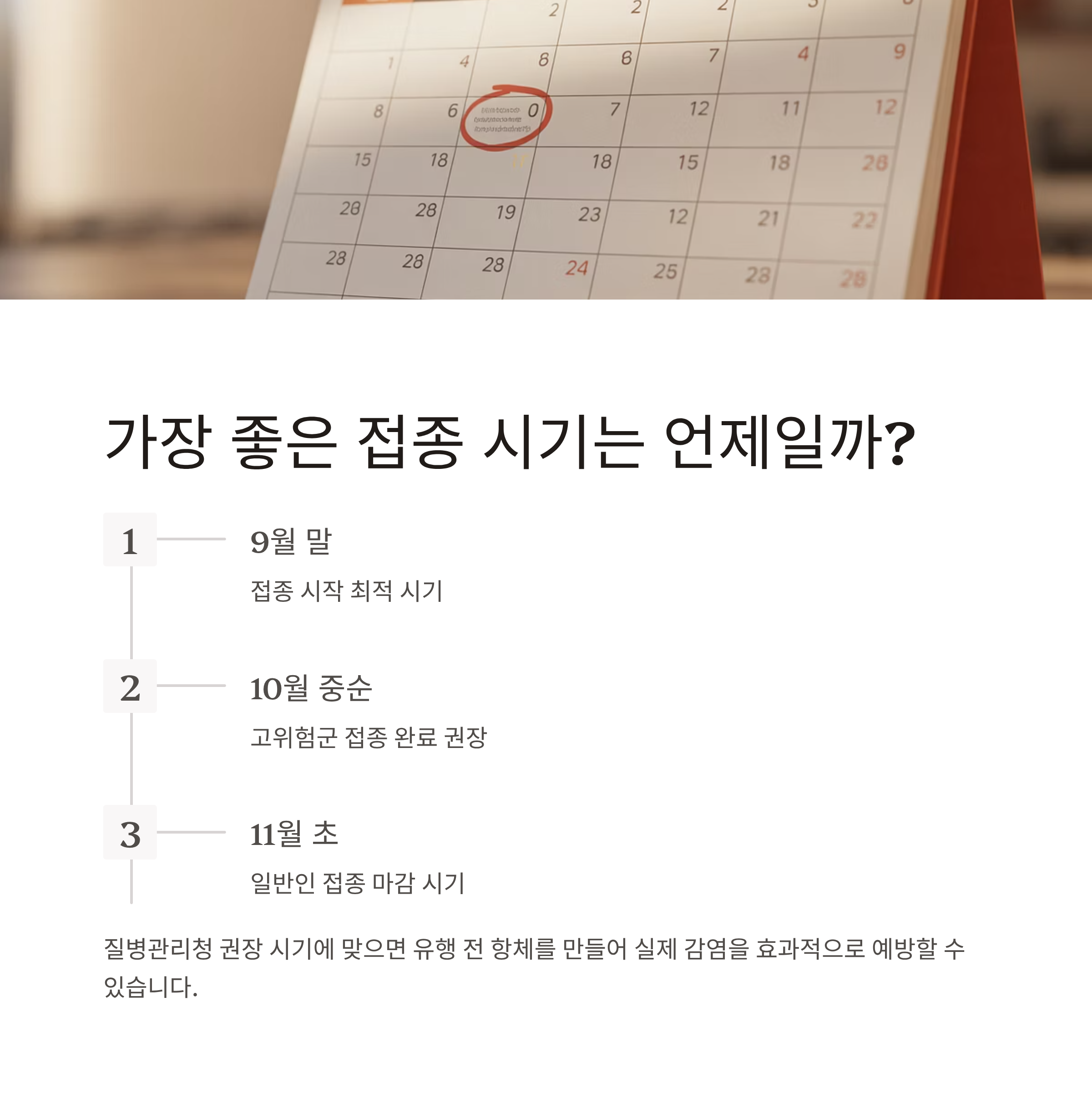 9월 말~10월 초에 접종을 마치는 것이 이상적입니다.