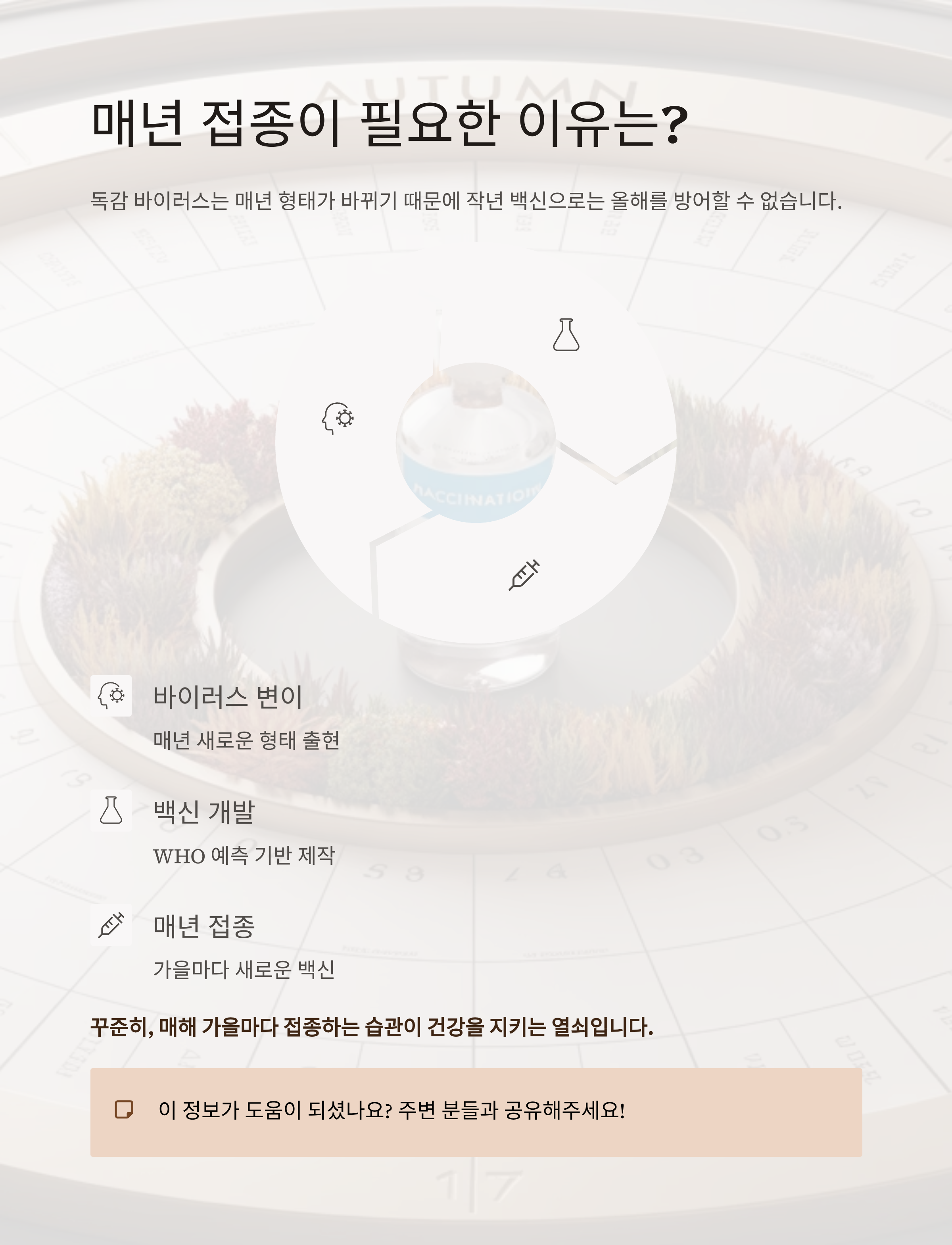 따라서 꾸준히, 매해 가을마다 접종하는 습관이 중요합니다.