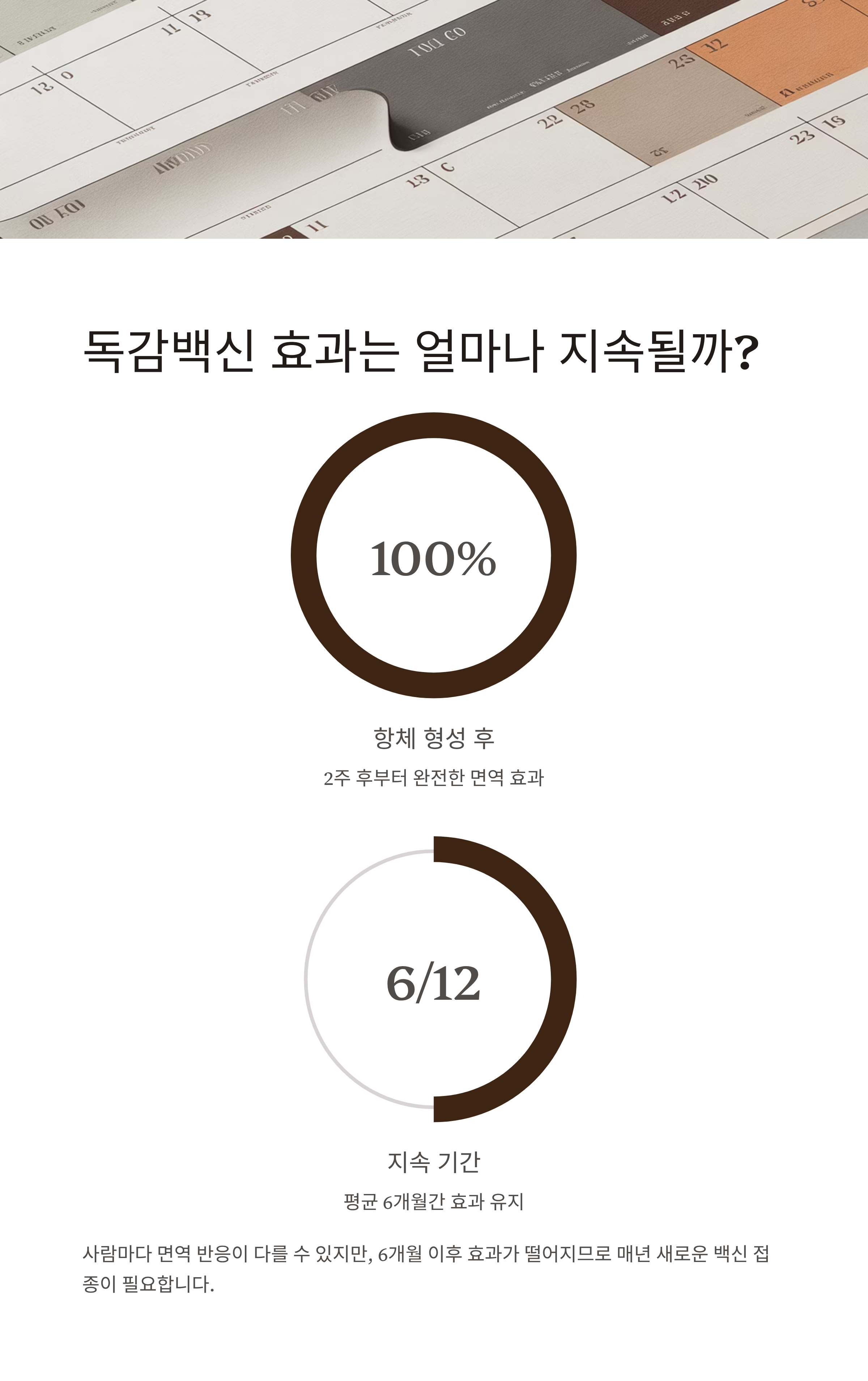 항체 형성 이후, 그 효과는 평균적으로 약 6개월간 지속된다고 알려져 있습니다.
