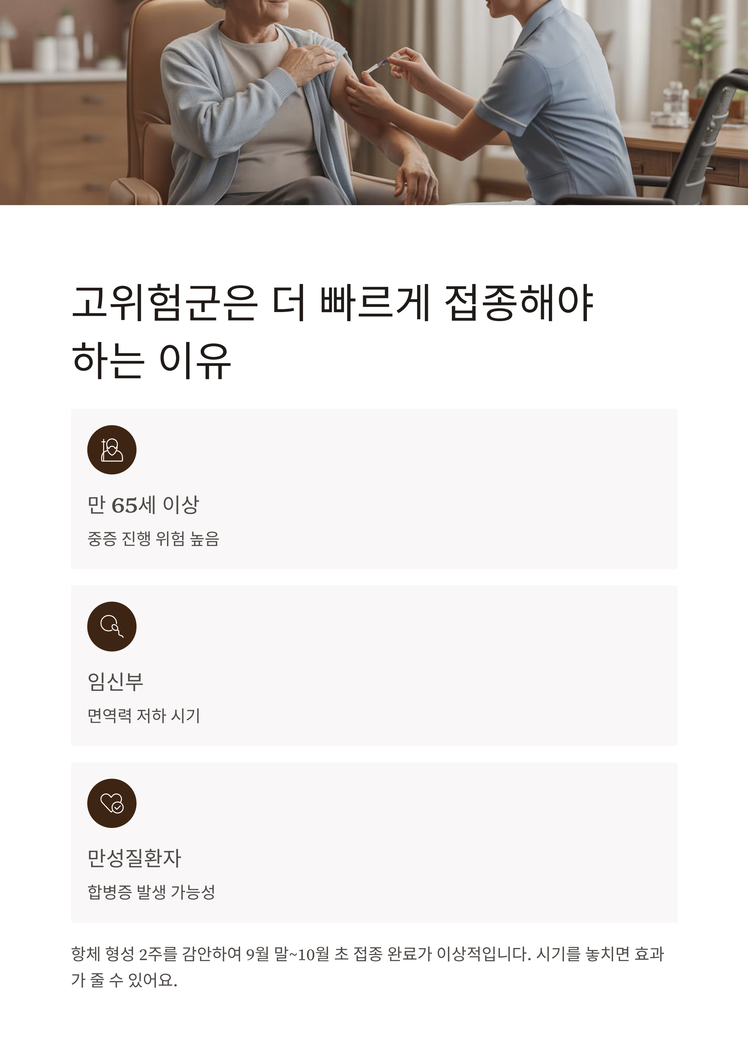 | 고위험군 권장 시기 | 9월 말 ~ 10월 초 |