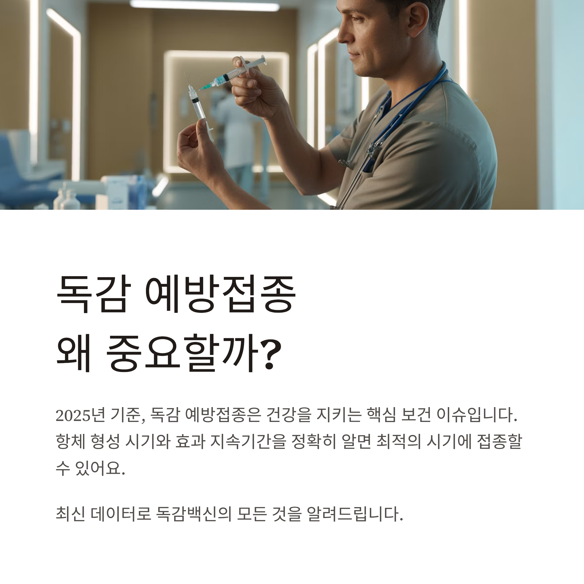 2025년 기준, 독감 예방접종은 매년 많은 사람들이 관심을 갖는 보건 이슈입니다. 특히 항체 형성 시기와 접종 후 효과 지속기간은 건강을 지키기 위한 중요한 기준이 되는데요. 이번 글에서는 최신 데이터를 바탕으로 독감백신의 효과 시작 시점, 지속기간, 적절한 접종 시기를 자세히 정리해 드립니다.