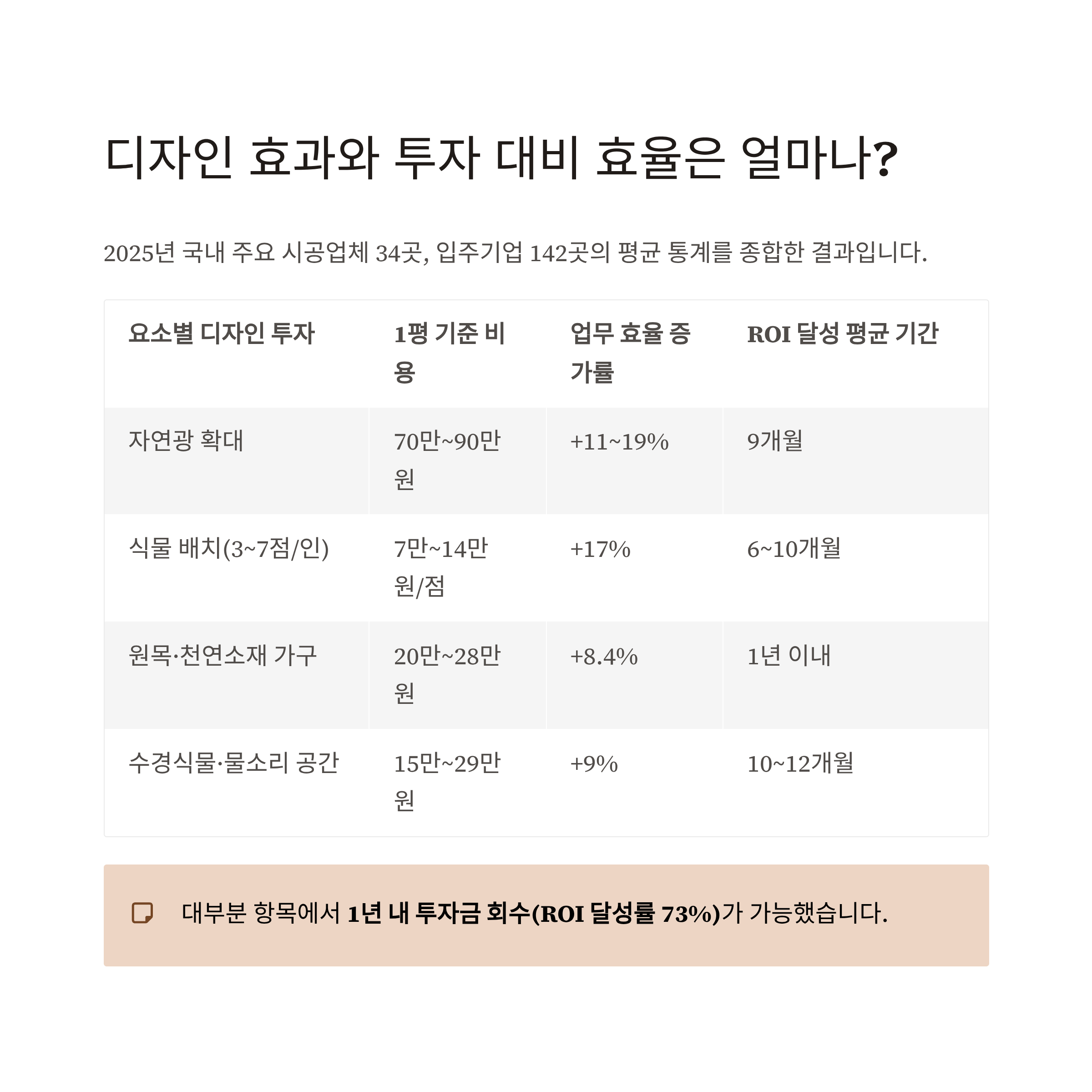 요소별 디자인 투자 1평 기준 비용 업무 효율 증가율 ROI 달성 평균 기간