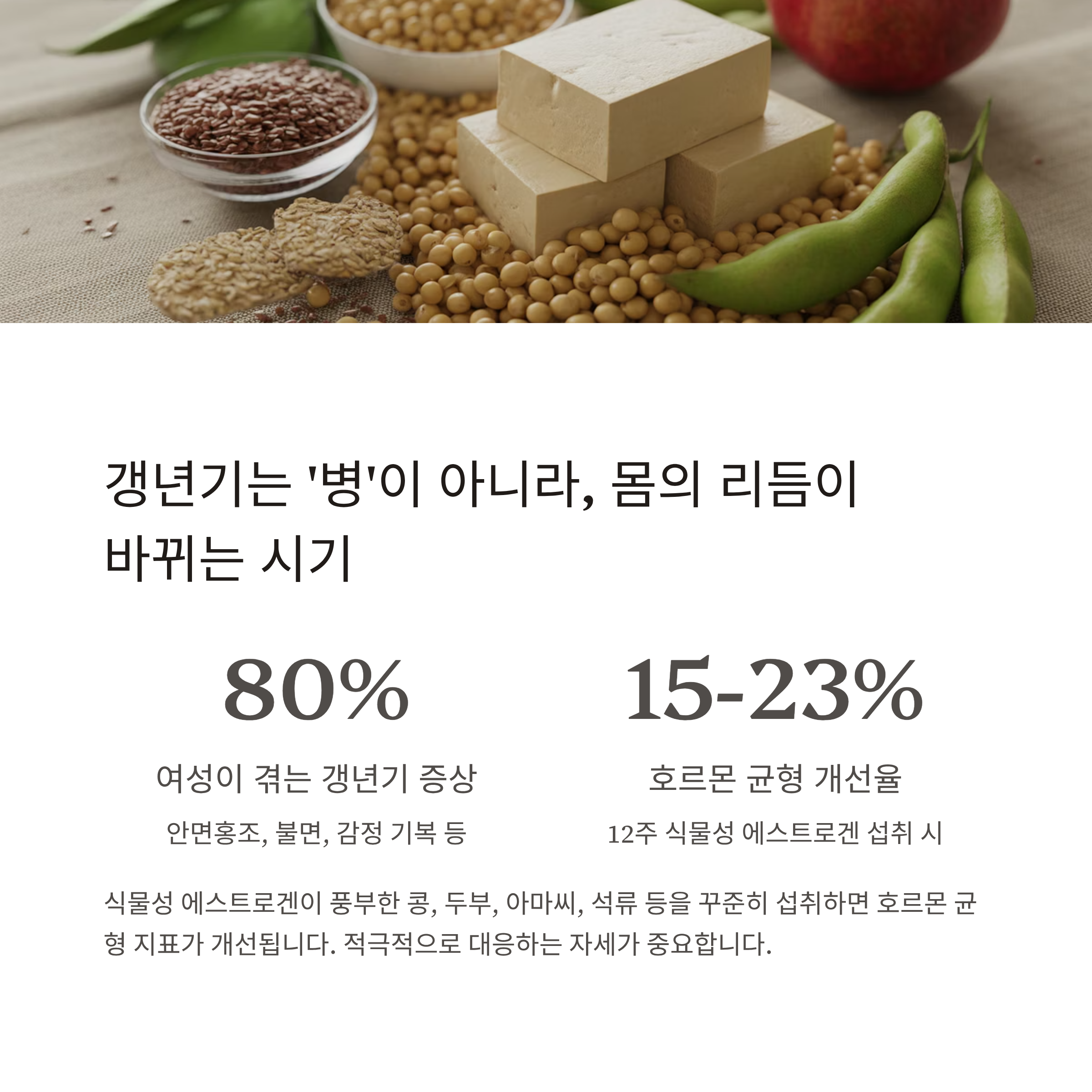 특히 식물성 에스트로겐이 풍부한 콩, 두부, 아마씨, 석류 등을 꾸준히 섭취하면 12주 후 호르몬 균형 지표가 평균 15~23% 개선된다는 연구도 있습니다.