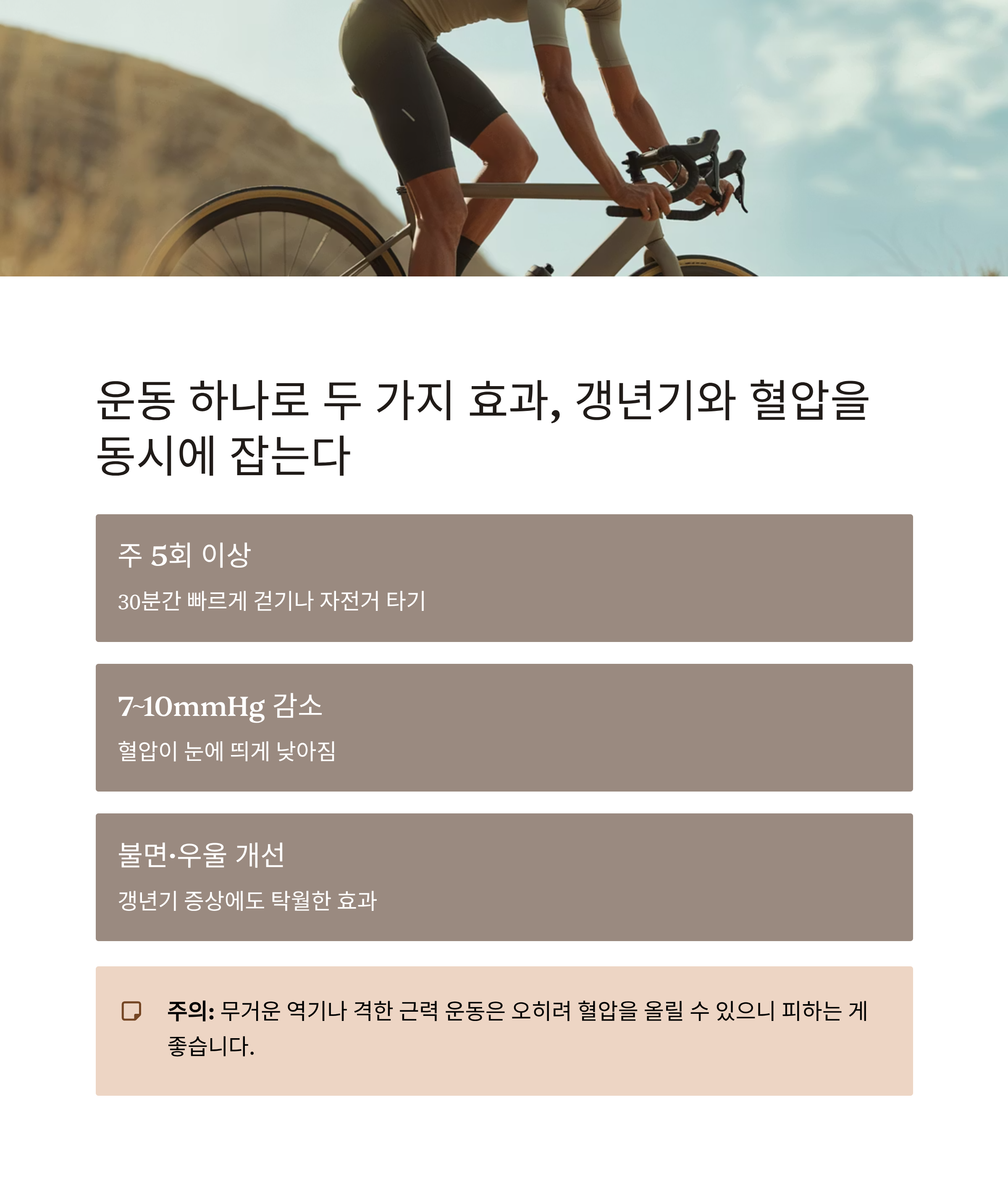 운동 하나로 두 가지 효과, 갱년기와 혈압을 동시에 잡는다