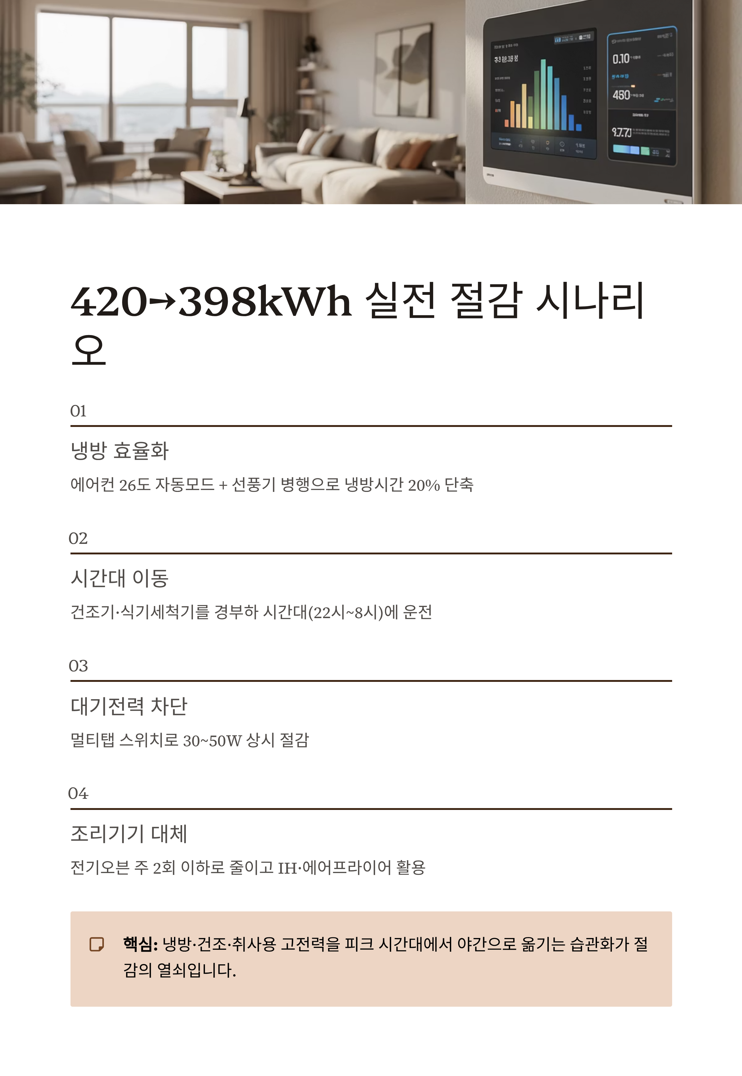 문제 해결 시나리오: “우리 집은 420 kWh, 어떻게 398로 내릴까?”