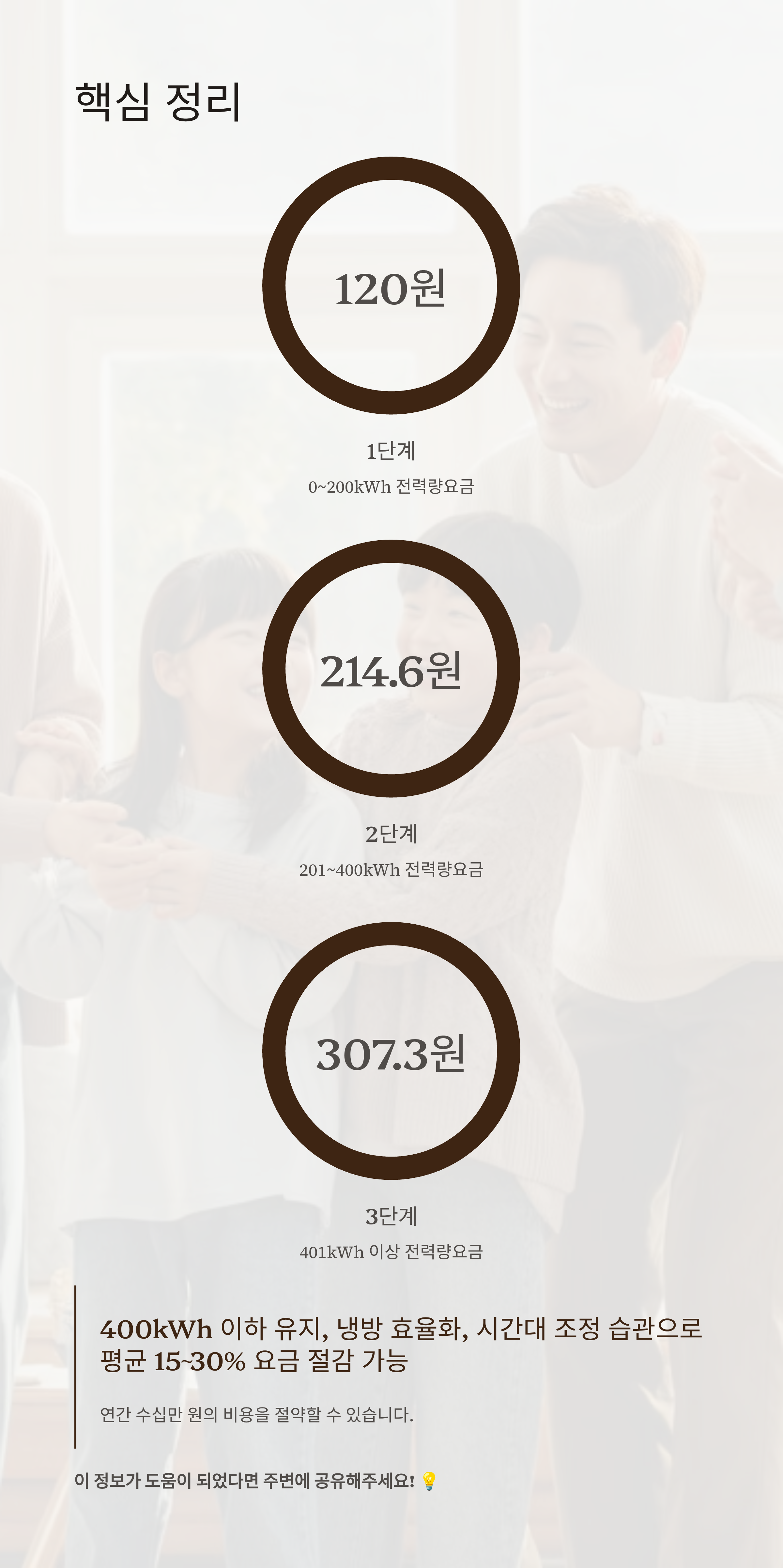 400 kWh 언저리에서 3단계로 진입하면 단가 307.3원이 즉시 적용됩니다.