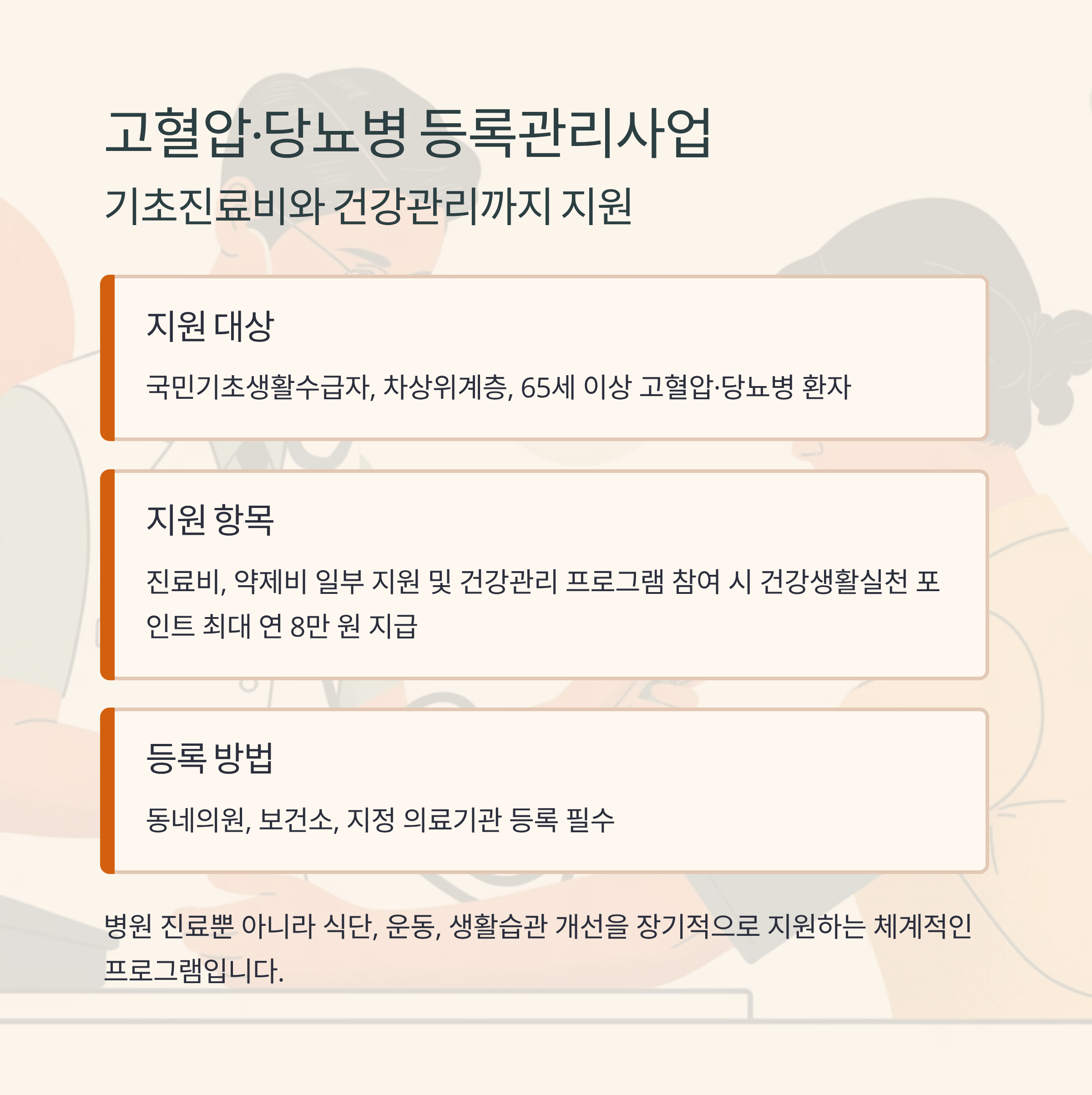 고혈압·당뇨병 등록관리사업: 기초진료비와 건강관리까지 지원