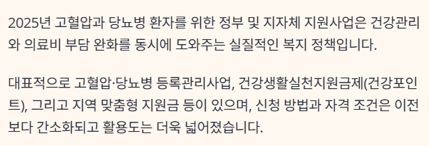 2025년 기준 고혈압 및 당뇨병 환자에게 제공되는 정부 및 지자체 지원금은 건강관리와 생활비 절감 효과를 동시에 제공합니다.