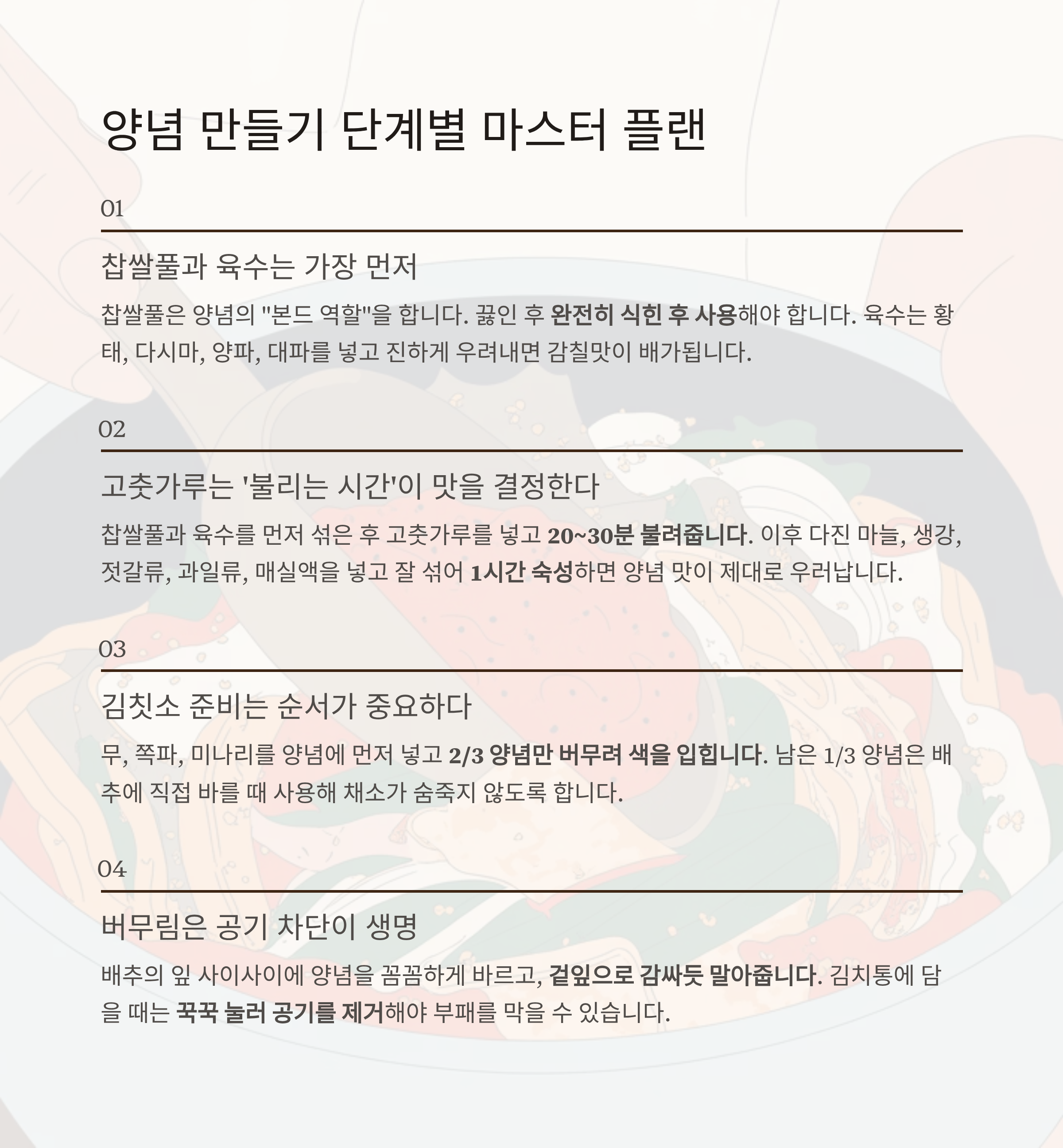 양념 만들기 단계별 마스터플랜