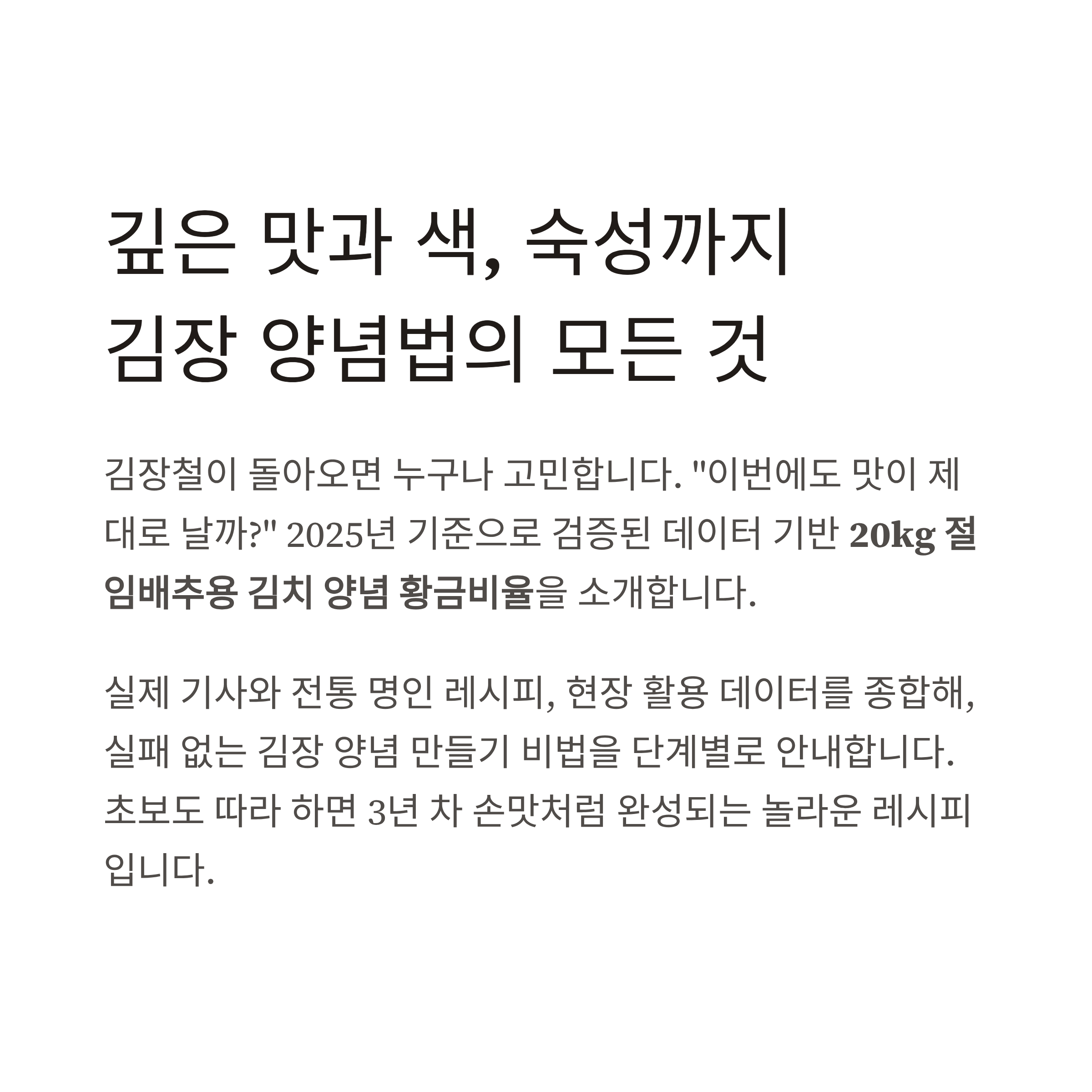 2025년 기준으로 검증된 데이터 기반 20kg 절임배추용 김치 양념 황금비율을 소개합니다.