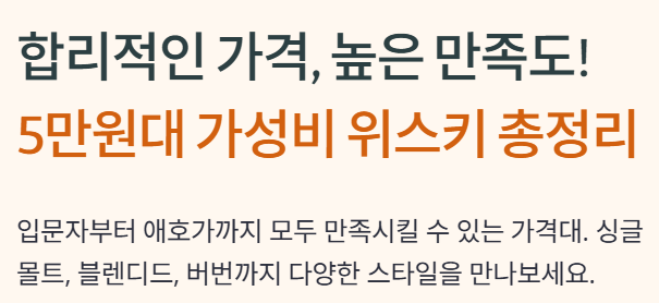 5만원대 위스키는 부담 없이 즐기기 좋은 라인업이 많습니다.