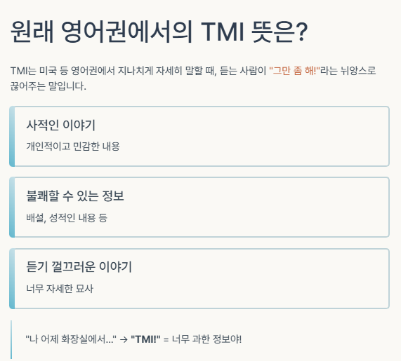 TMI 뜻, 예시, 원래 의미까지 한눈에 정리
