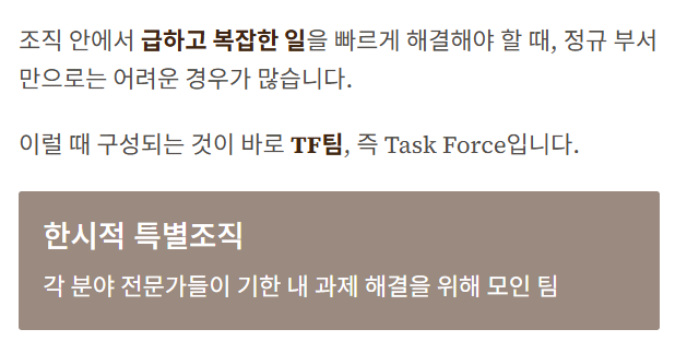 정규 부서와 다른 TF팀의 핵심 구조